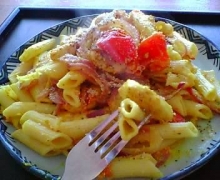 スパイシーなタンドリーチキンにペンネがぴったり!