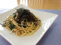 鯵とほうれん草の梅肉ソースパスタ