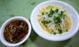 - お皿にパスタをのせ、その上に千切りにした大根、ねぎを散らす。 器に3を入れる。