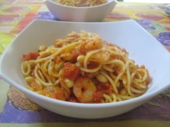 えびと大豆のトマト味パスタ